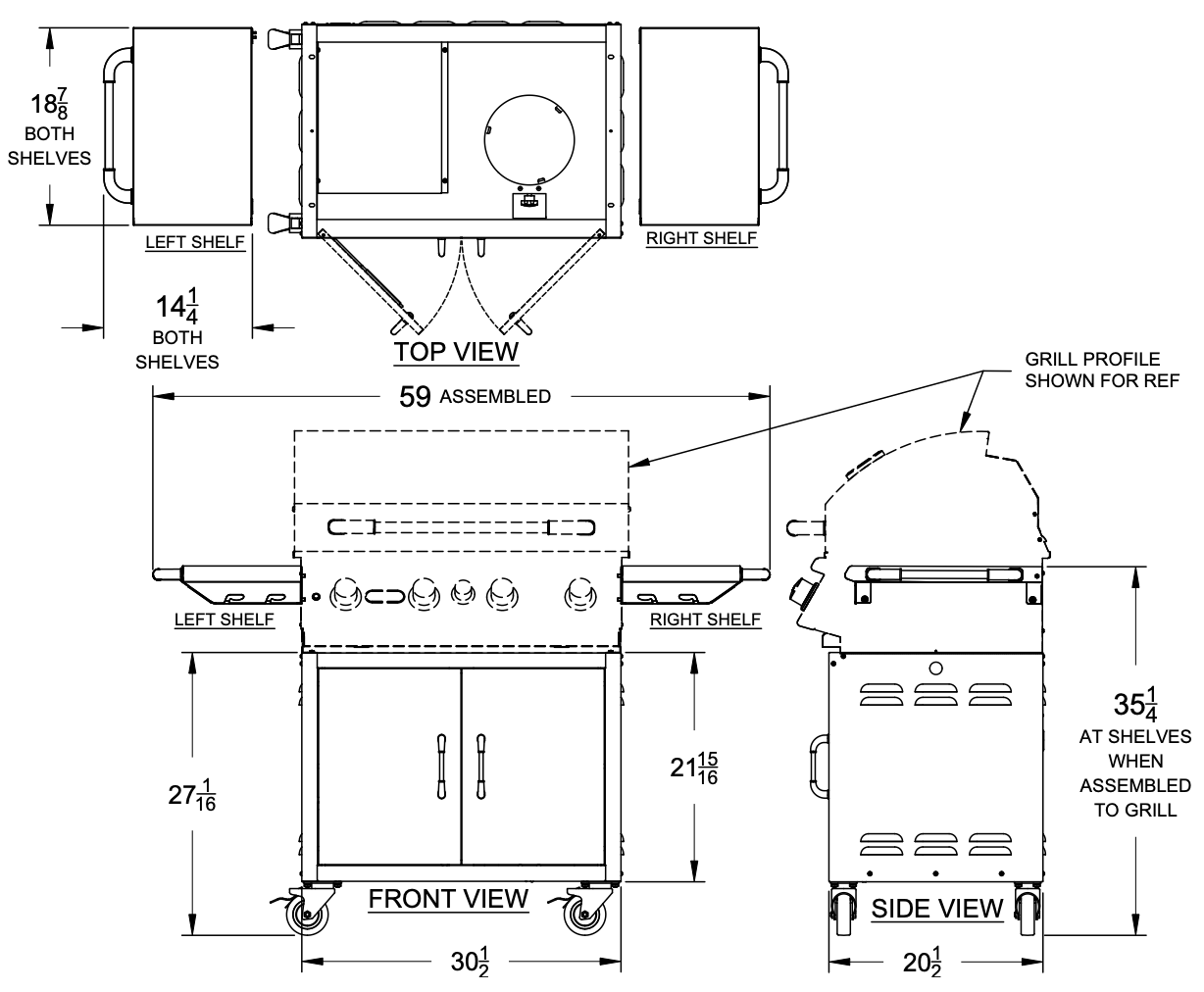 Like all of Bull’s products, the 30″ Bull Commercial Style Griddle is constructed of 304 stainless steel and uses four burners to produce 60,000 BTUs of power under a chromium plated griddle designed to withstand its intended outdoor application. The griddle sits upon a stainless-steel cart bottom that has two sturdy side shelves and a set of heavy-duty casters that make moving the cart around your outdoor living space very easy. The 30″ Commercial Griddle cart is available in both LP and NG versions.