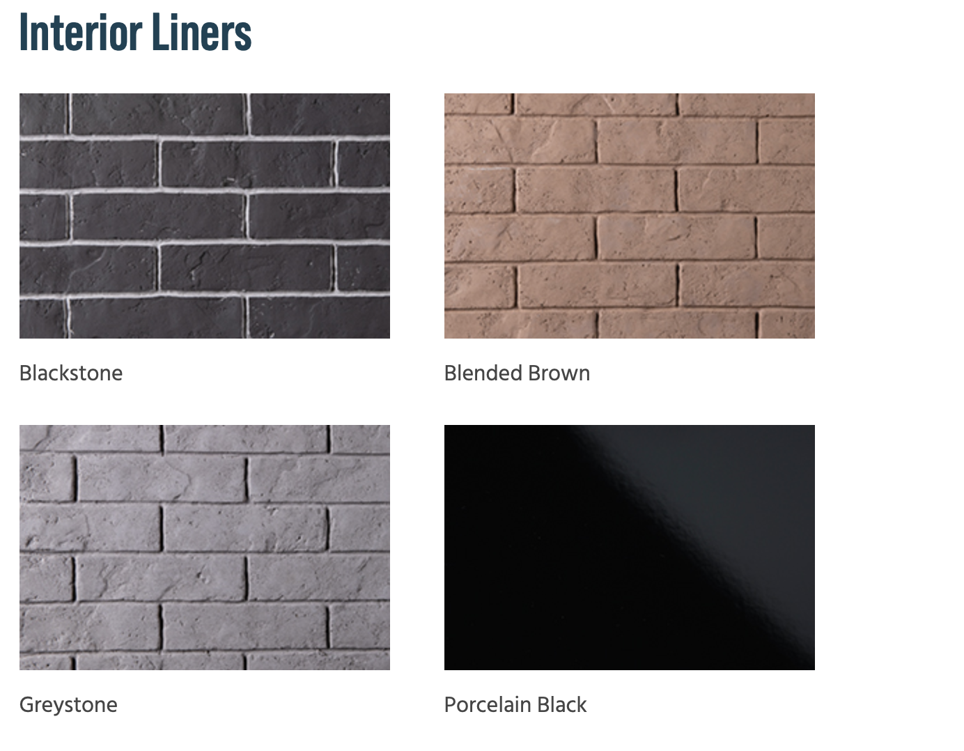 - Interior selections consist of black porcelain and a variety of ceramic fiber liners (required)