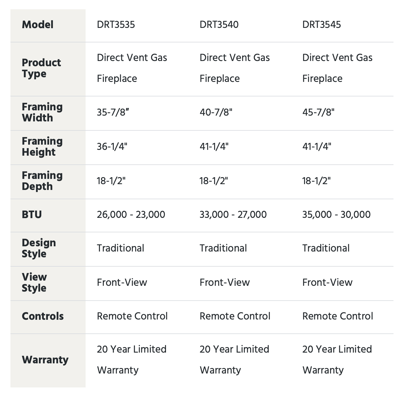 The DRT3500 Series is the true representation of fully-featured value. Equipped standard with appealing features such as ceramic glass, interior illumination, full-function remote, and blower kit. Choose from a variety of interior liners for a personal “signature” touch. Versatile. Efficient. Affordable. The DRT3500 Series is value without compromise.