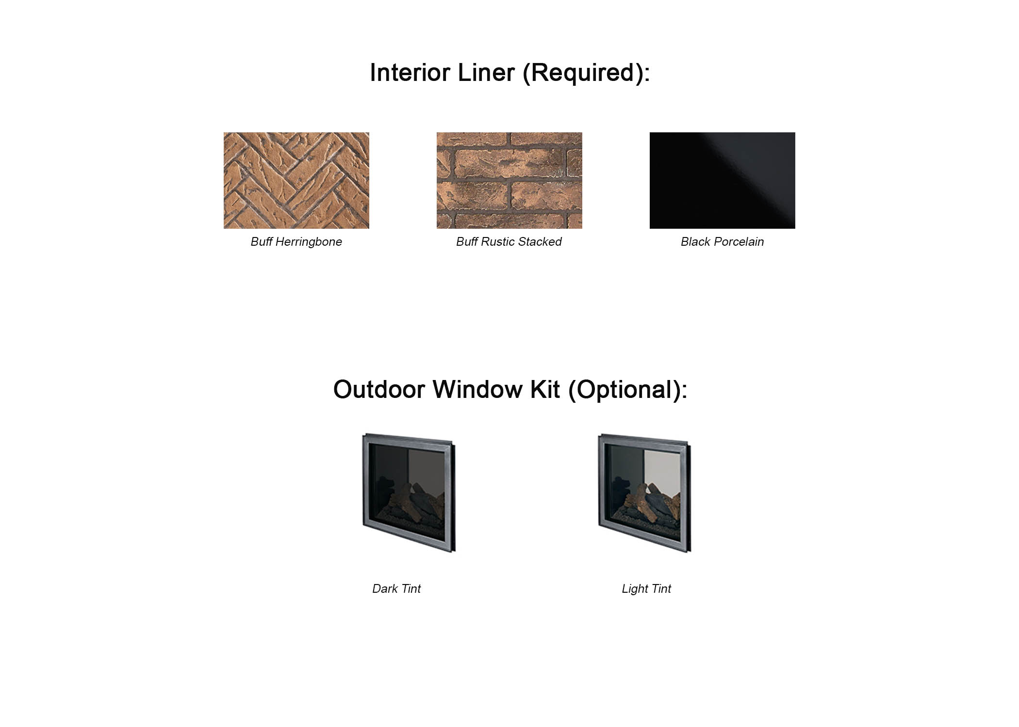 - Liner Kit: Buff Rustic Ceramic Liner Kit, Buff Herringbone Ceramic Liner Kit, Black Porcelain Liner Kit (Required)