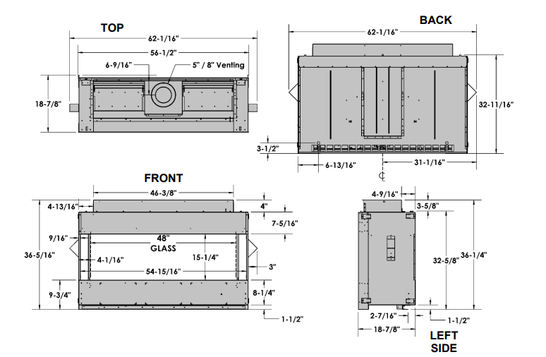 - Overall Dimensions - 56 1/2" W x 36 5/16" H x 18 7/8" D