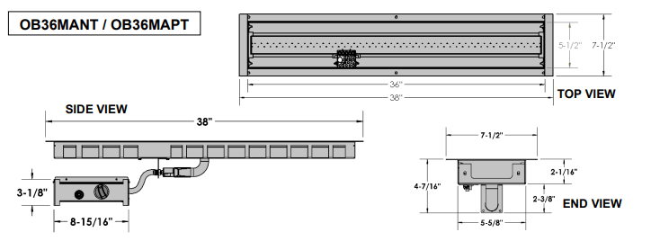 - Dimensions - 38″L x 7 1/2″W (See below images for dimensions on each ignition system)