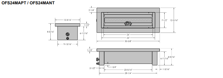 - Overall Dimensions - 30 5/8" W x 8 3/16" H x 12 13/16" D