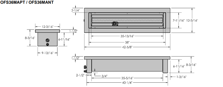 - Overall Dimensions - 42 5/8" W x 8 3/16" H x 12 13/16" D