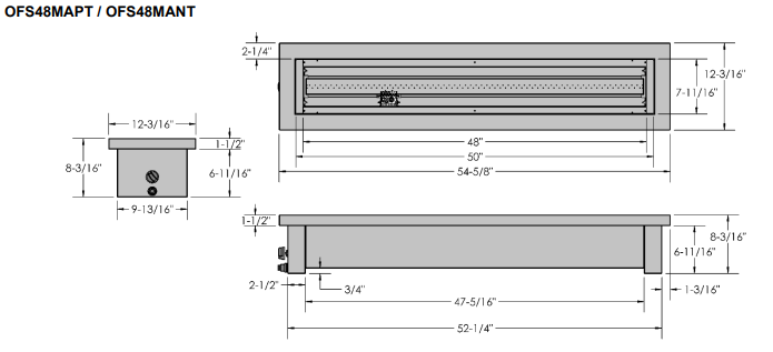 - Overall Dimensions - 54 5/8" W x 8 3/16" H x 12 13/16" D