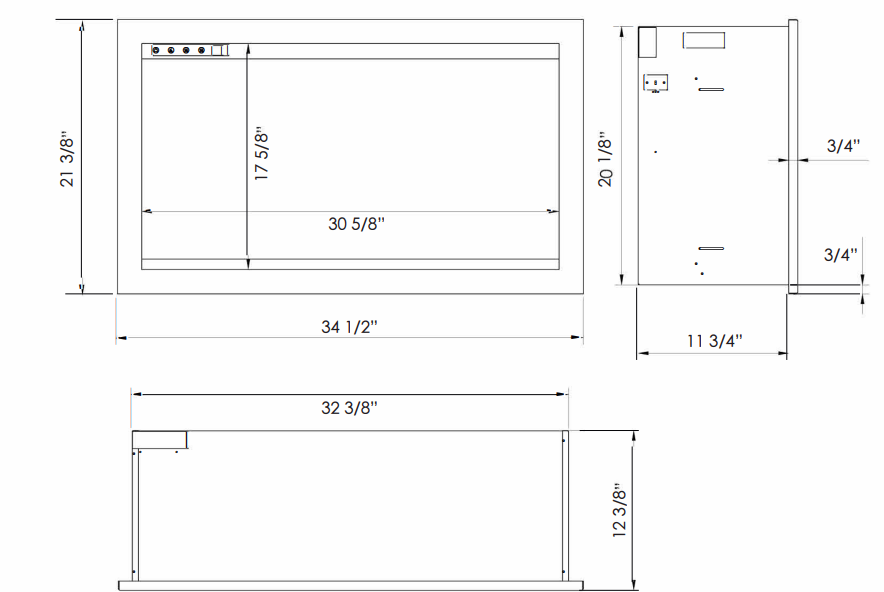 - Overall Dimensions: 32 3/8" W x 20 1/8" H x 11 3/4" D
