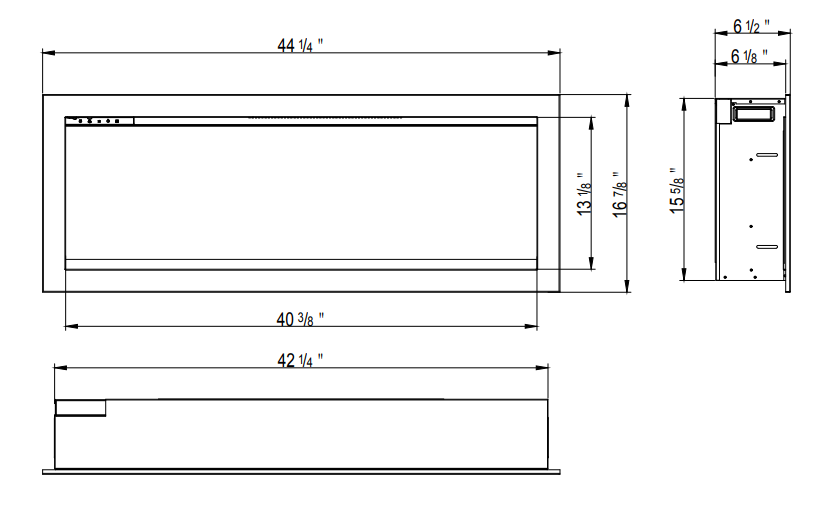 - Overall Dimensions: 42 1/4" W x 15 5/8" H x 5 1/2" D