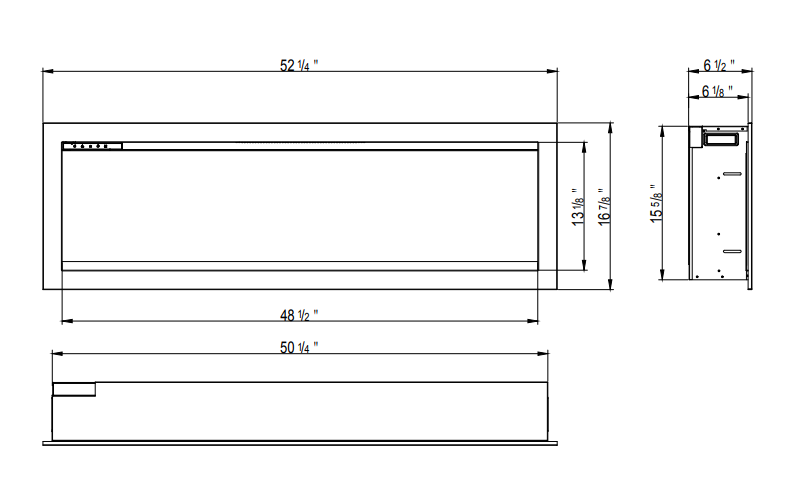 - Overall Dimensions: 50 1/4" W x 15 5/8" H x 5 1/2" D