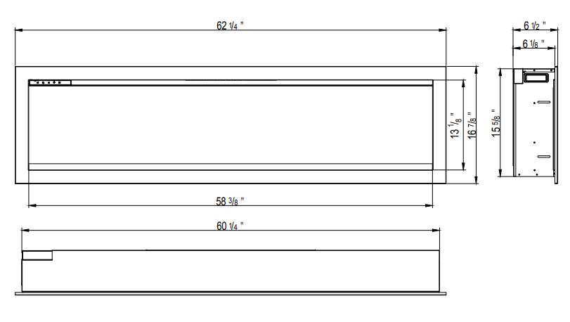 - Overall Dimensions: 60 1/4" W x 15 5/8" H x 5 1/2" D