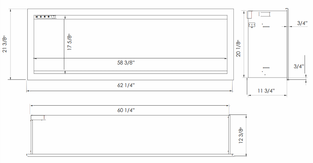 - Overall Dimensions: 60 1/4" W x 20 1/8" H x 11 3/4" D