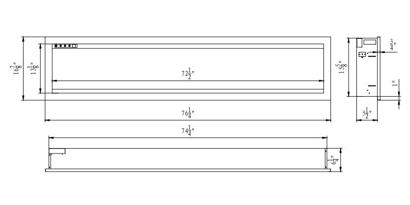 - Overall Dimensions: 74 1/4" W x 15 5/8" H x 5 1/2" D