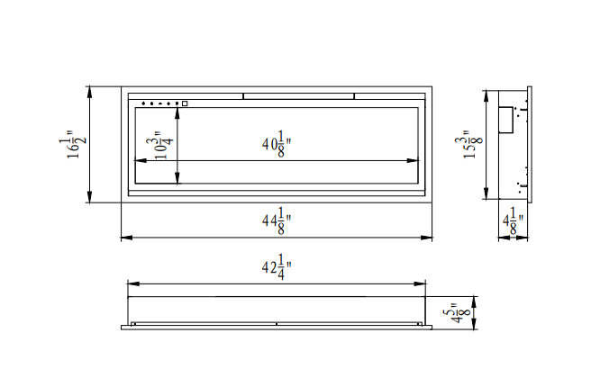 - Overall Dimensions: 42 1/4" W x 15 3/8" H x 4 1/8" D