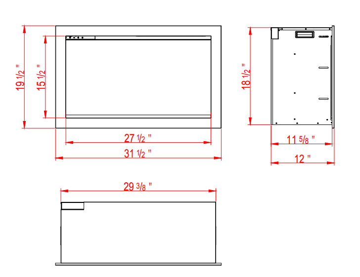 - Overall Dimensions: 29 3/8" W x 19 1/8" H x 11 3/8" D