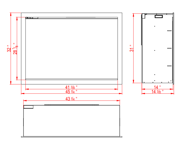 - Overall Dimensions: 43 1/4" W x 31 5/8" H x 13 3/4" D