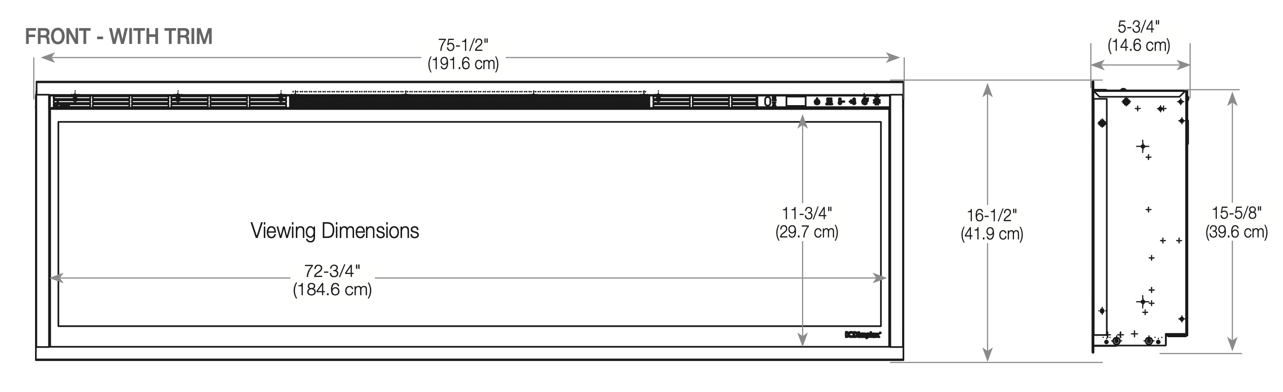 - Framing Dimensions: 74 5/8" W x 16" H x 3 1/2" D