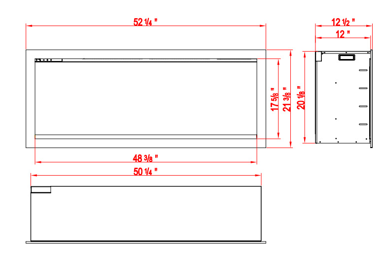 - Overall Dimensions: 50 1/4" W x 20 1/8" H x 11 3/4" D