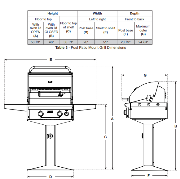 Perfect for condos, apartments, or any setting where space is limited, the American Outdoor Grill In-Ground and Patio Post Mount units deliver full-size performance in a compact footprint. With 432 square inches of grilling space, these models bring plenty of cooking enjoyment to smaller areas. The In-Ground model secures directly into cement for a permanent setup, while the Pedestal model bolts easily to a deck or concrete slab. Both designs come equipped with a backburner, warming rack, and dual side shelves for added convenience.
