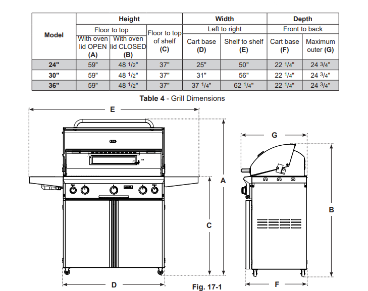 - Primary Cooking Surface: 36" x 18" (648 sq. in.)