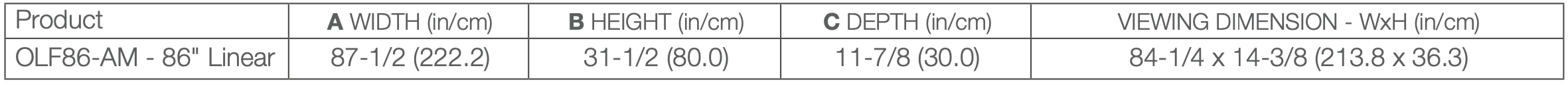 - Viewing Area: 84 1/4" W x 14 3/8" H