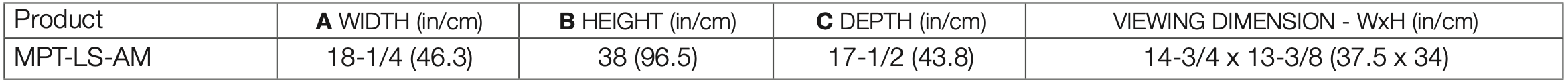 - Unit Dimensions: 18 1/4" W x 38” H x 17 1/2" D