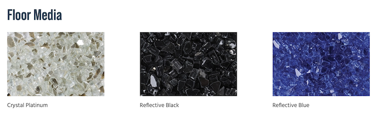 - Reflective black crushed glass media included with optional colors available to customize the look