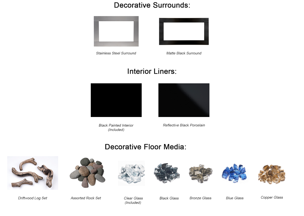 - Black painted interior standard with an optional reflective porcelain liner for added flame depth