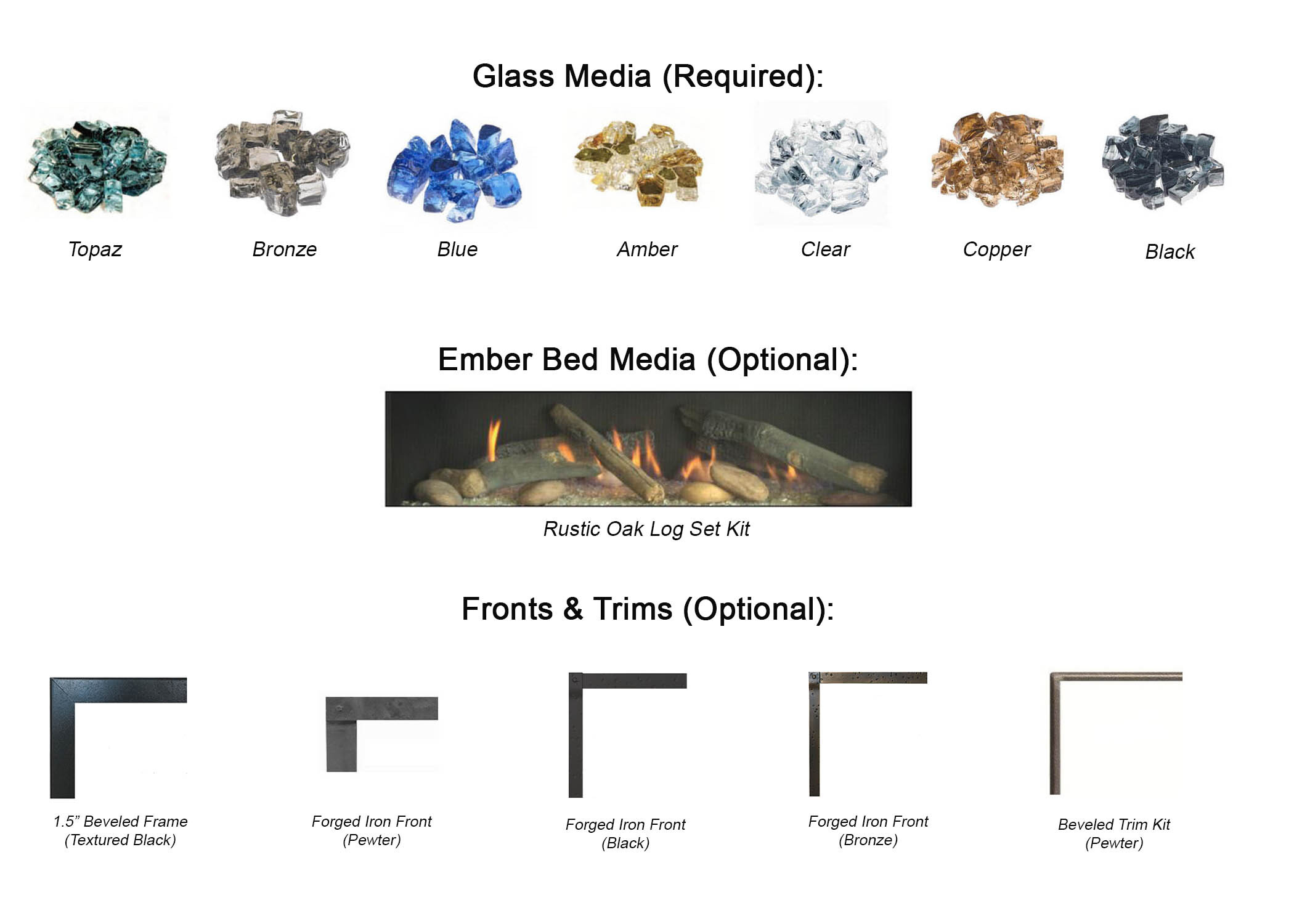 Custom finish options let you choose liners, decorative glass, logs, and fronts to match your décor.