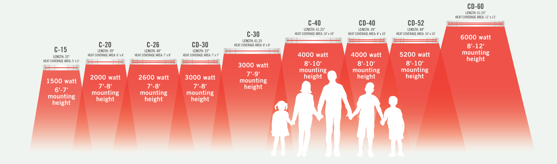 Our Contemporary Series dual element fixtures are designed to maximize comfort and design in high visibility spaces, where significant heat output and style are required.