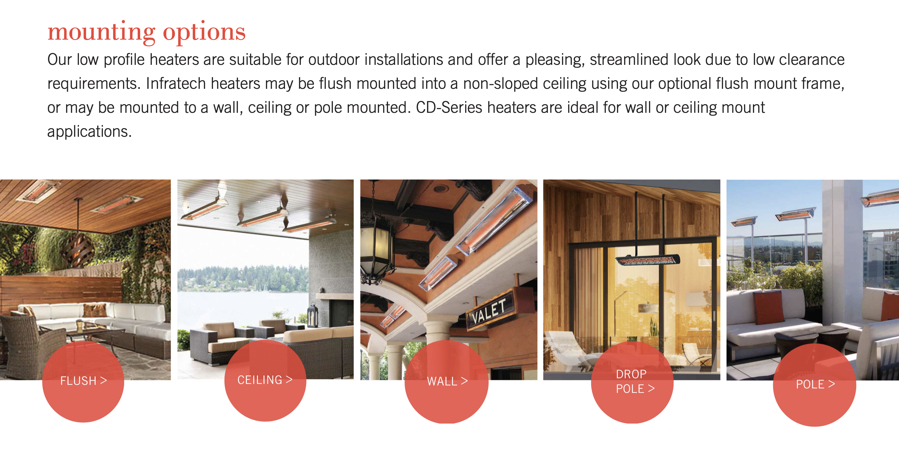 Our Contemporary Series dual element fixtures are designed to maximize comfort and design in high visibility spaces, where significant heat output and style are required.