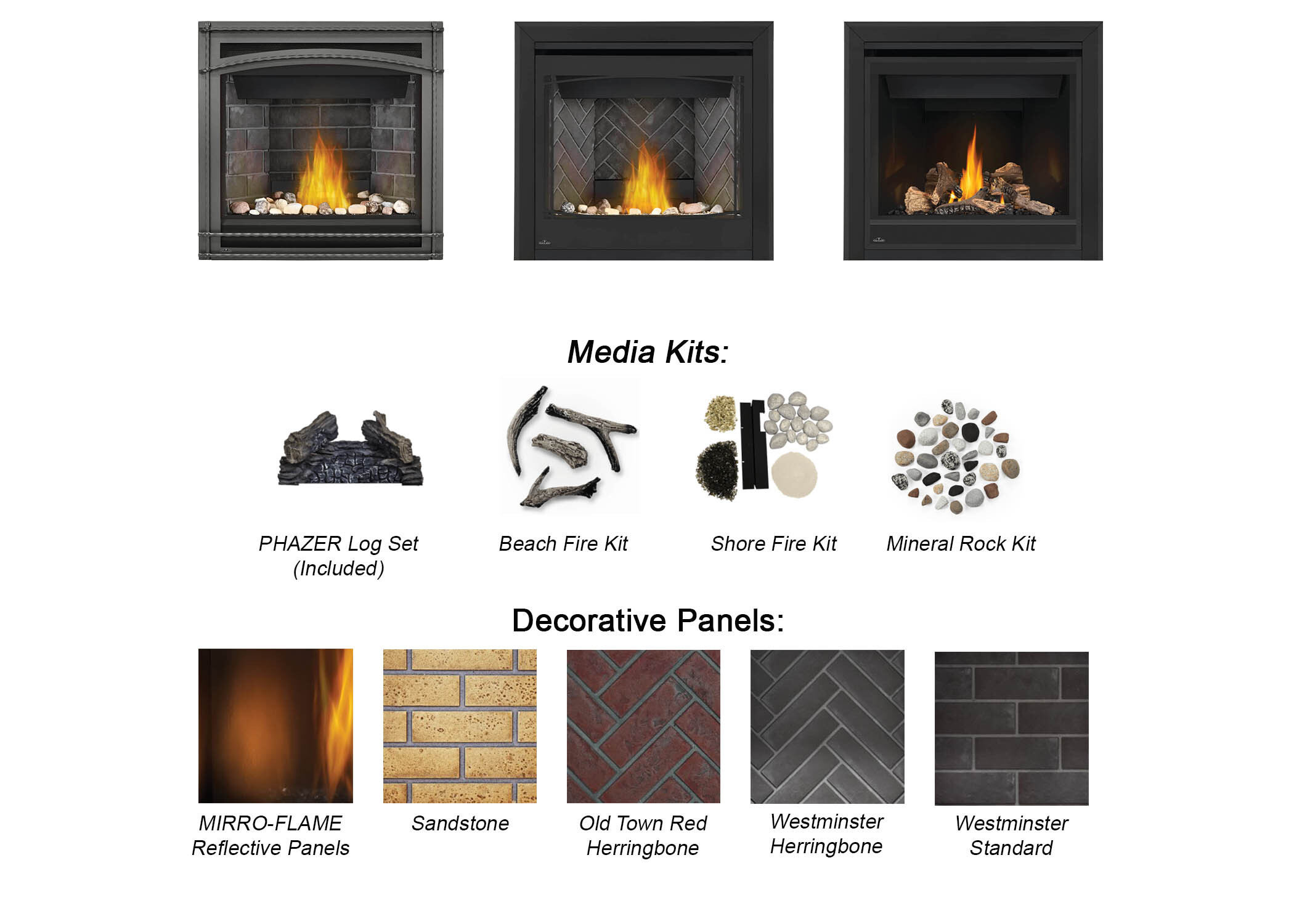 Customize the style with five decorative brick kits, four media enhancement options, and multiple trim and front choices.