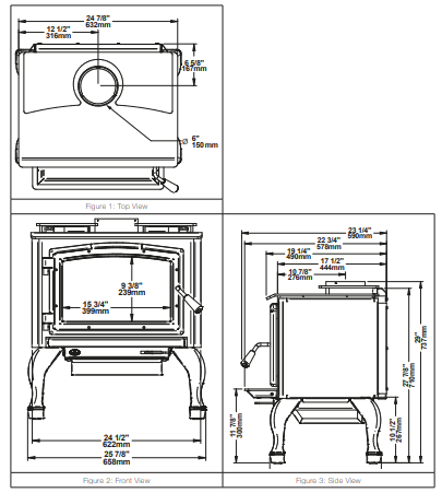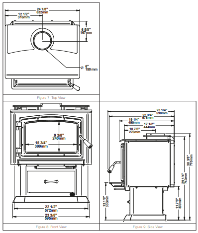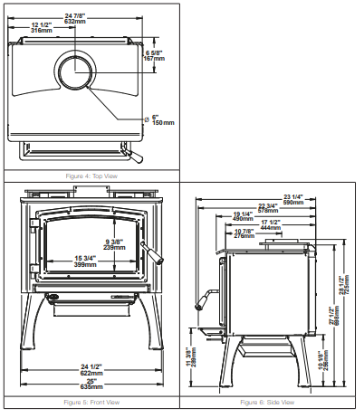- Chimney / flue outlet diameter: 6″