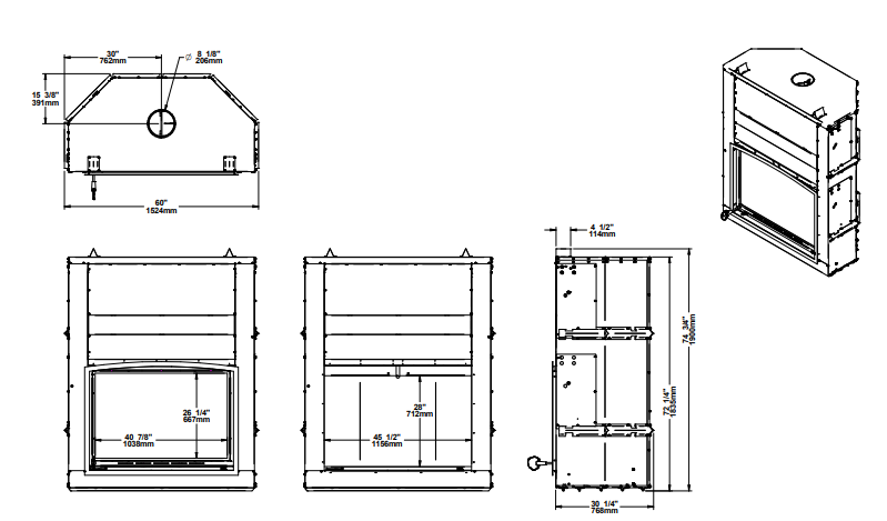 - Firebox Internal Dimensions: 35″ H × 31 ½″ W × 10 ¾″ D