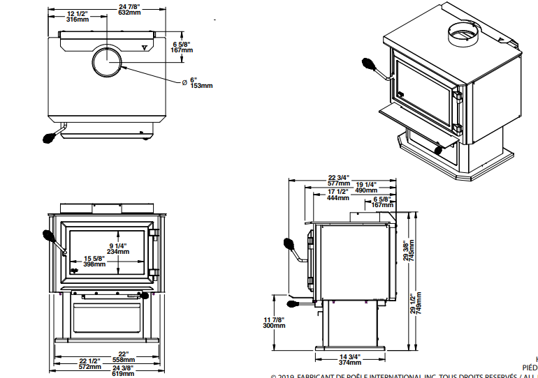 - Firebox Dimensions: 19 5/8" W x 11 7/8" H x 13 1/2" D