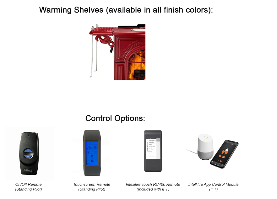 - Ignition System: Standing Pilot or Intellifire Touch Electronic Ignition